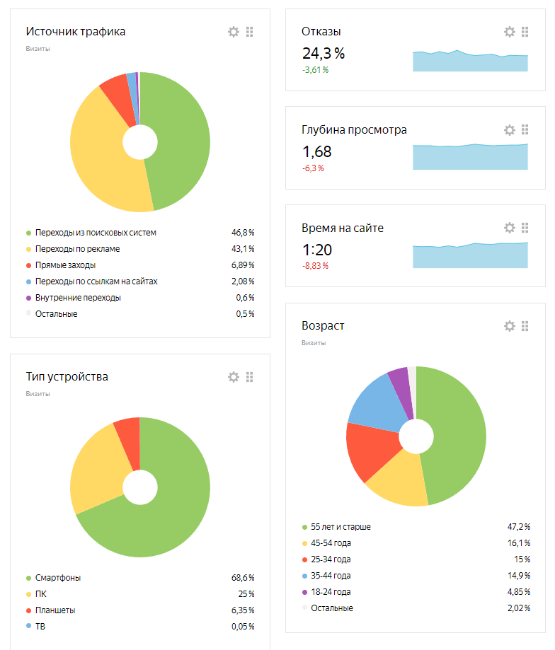 На текущий момент состав нашей аудитории — в основном люди старше 54-х лет. Преимущественно люди заходят на сайт через смартфоны.